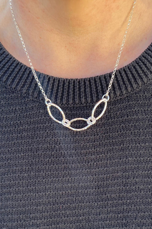 Sterling Silver Hammer Textured Coin Pearl Necklace