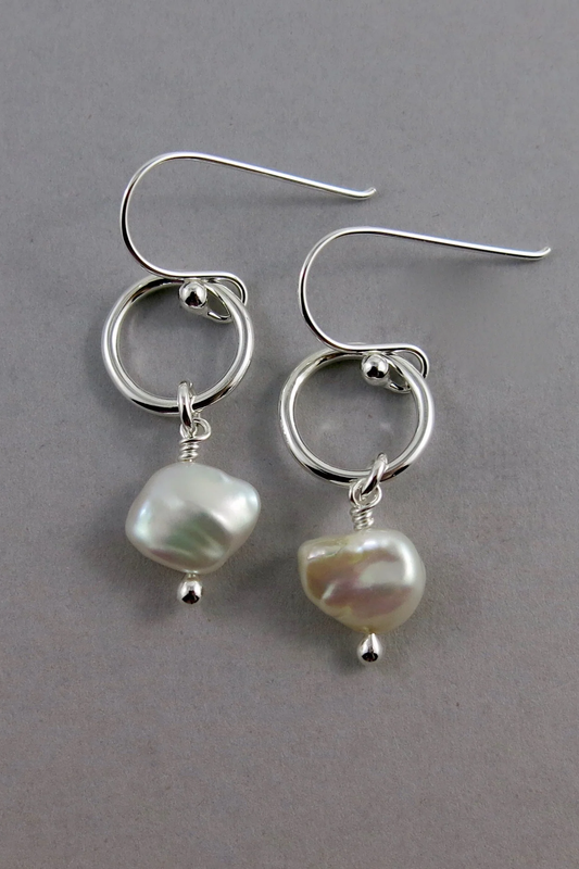 Organic Keshi Pearl Circle Drop Earrings • Sterling Silver
