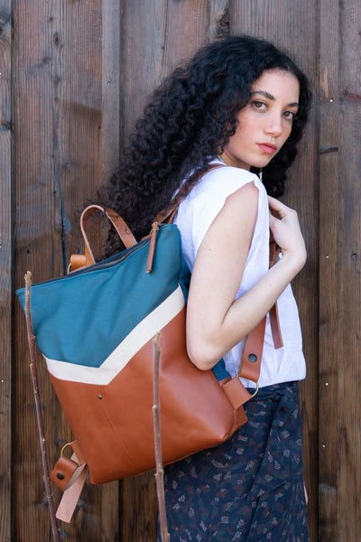 Cairo Backpack - recycled leather and vegetable tanned mix