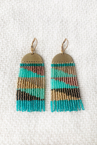 Solid Brass Top Fringe Earrings - Abstract pattern