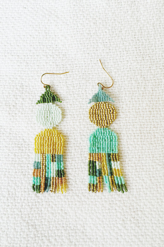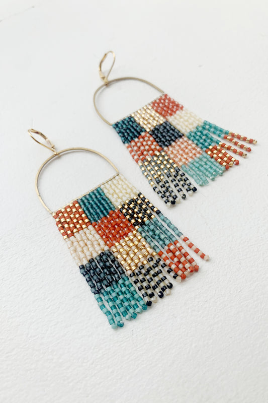 Multicolour/ TransluscentHoundstooth Beaded Fringe Earrings