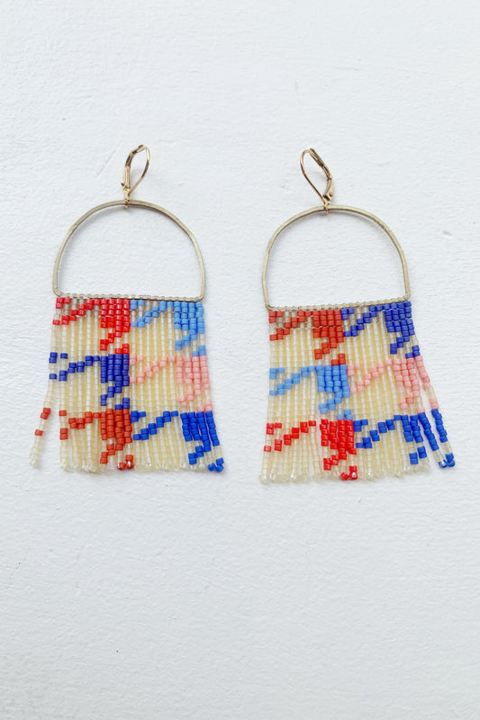 Red/Blue/Pink Houndstooth Beaded Fringe Earrings