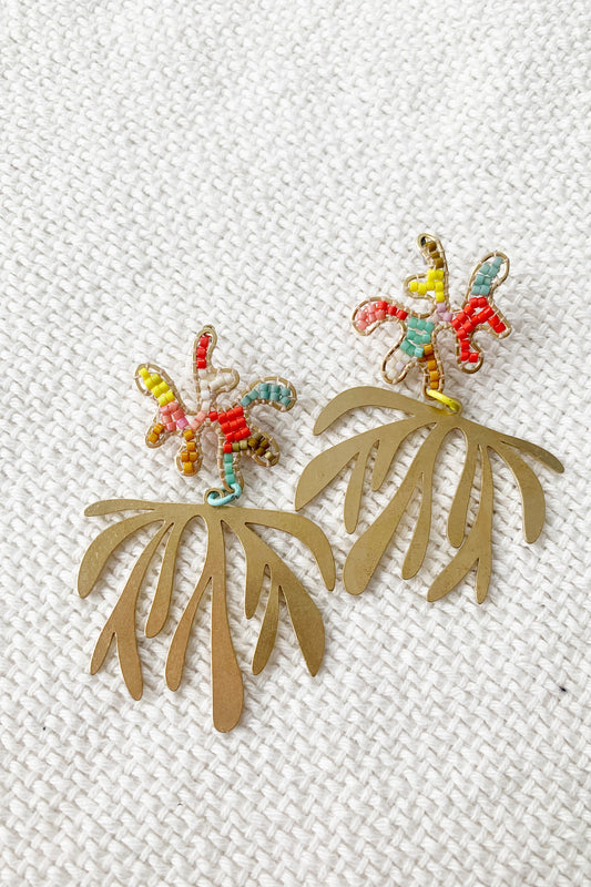 Squiggle Multicolour Studs w/ Brass Flower Dangle