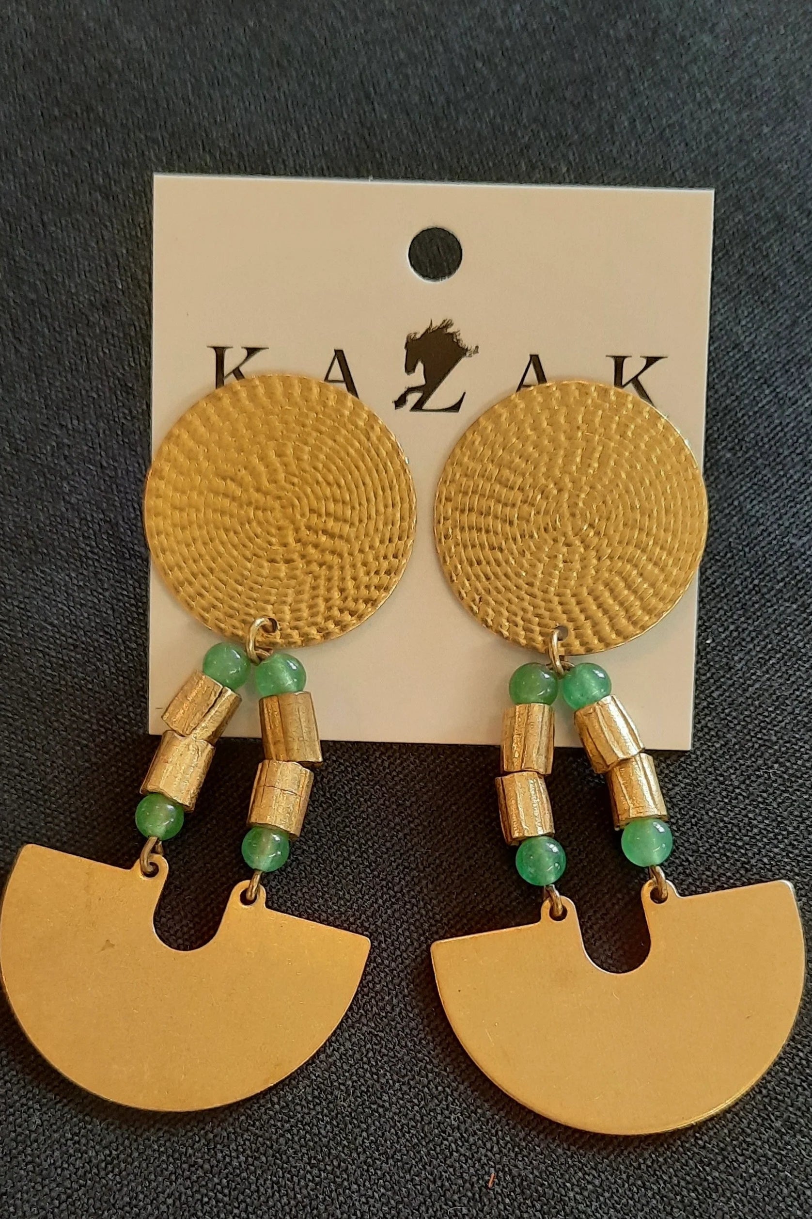 Earrings made of brass, handcrafted beads and semi-precious stones.