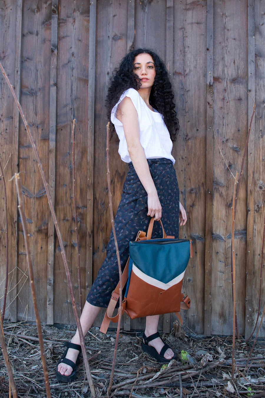 Featuring a high-end leather façade and a durable, waxed canvas back, the Atchison Backpack can be swiftly converted into a chic shoulder bag with the help of its snap-fastening loops. Secured with a clasp and lined with a waterproof fabric, the backpack offers a spacious main compartment and an additional internal open pocket. An exterior topstitched zip pocket provides quick access and is large enough to easily accommodate a 13" laptop.