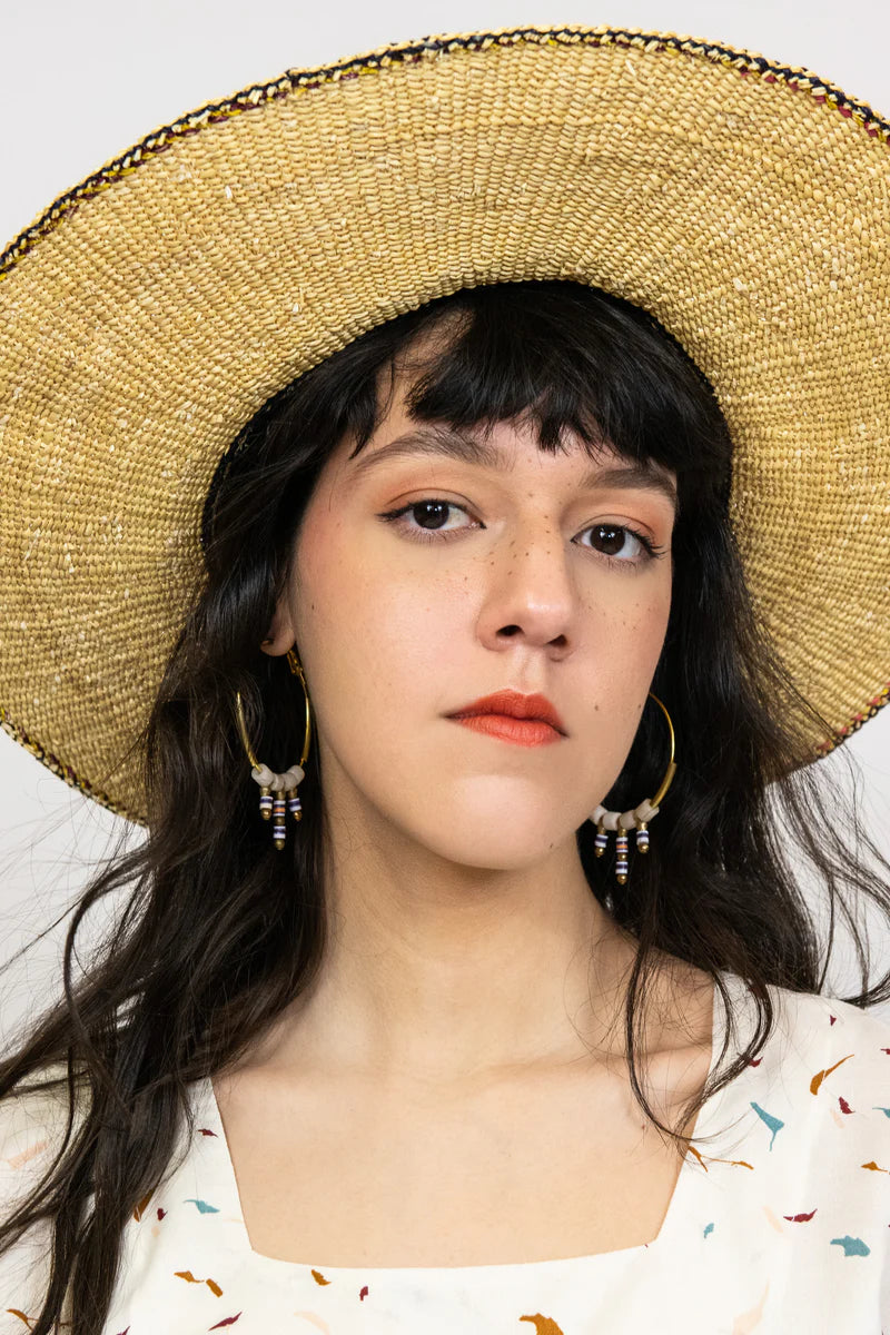 Hoop earrings with bead mounting, recycled vinyl and brass parts from African fair trade.