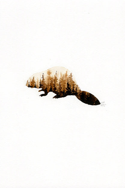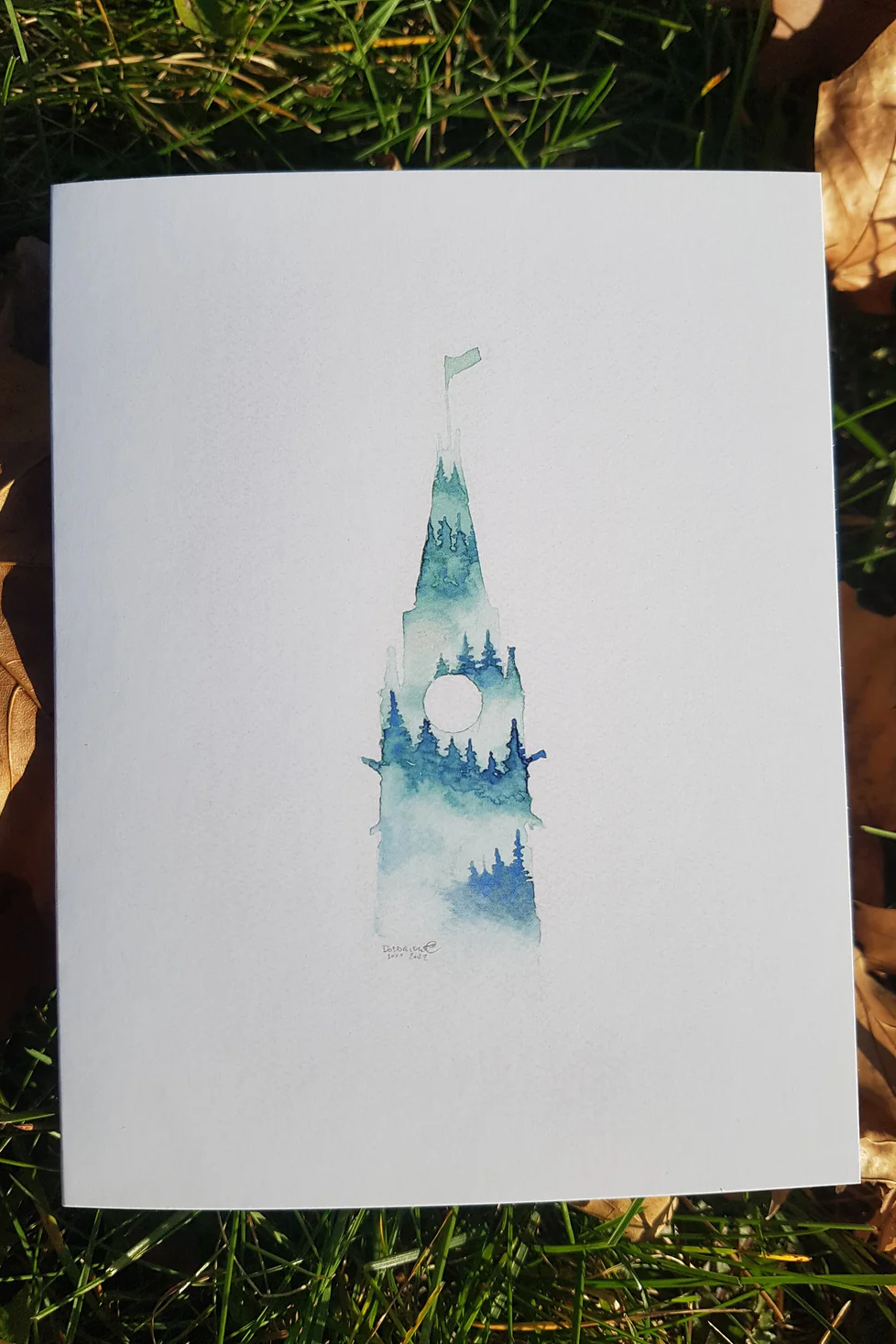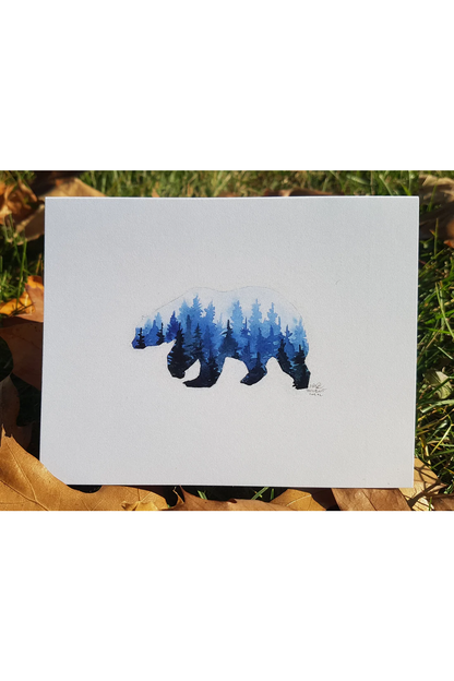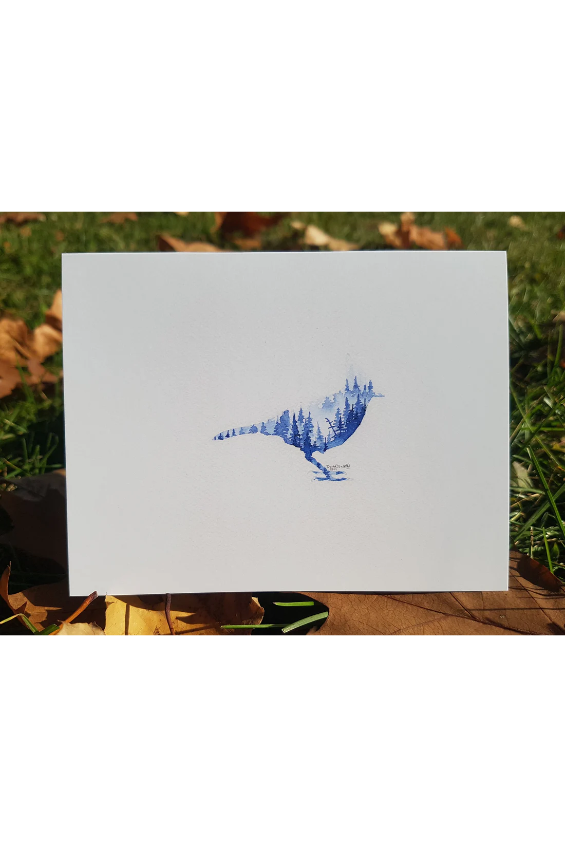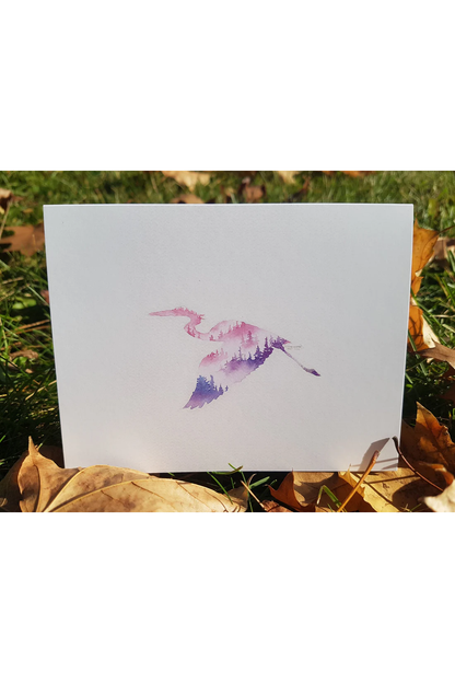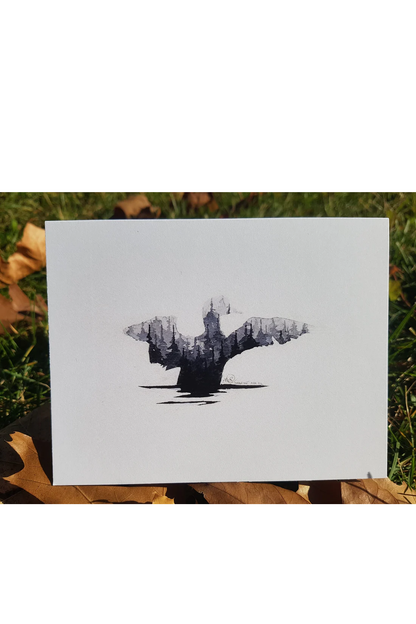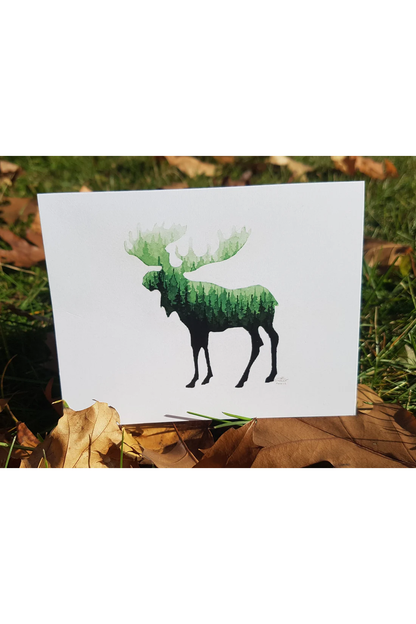 Celebrate the beauty of Canada's wild landscapes with this stunning greeting card. Featuring the iconic silhouettes of a bear, moose, beaver, loon, fox, blue jay, heron and peace tower, the designs incorporates lush forest imagery, evoking the tranquil spirit of the great outdoors.