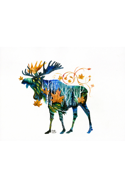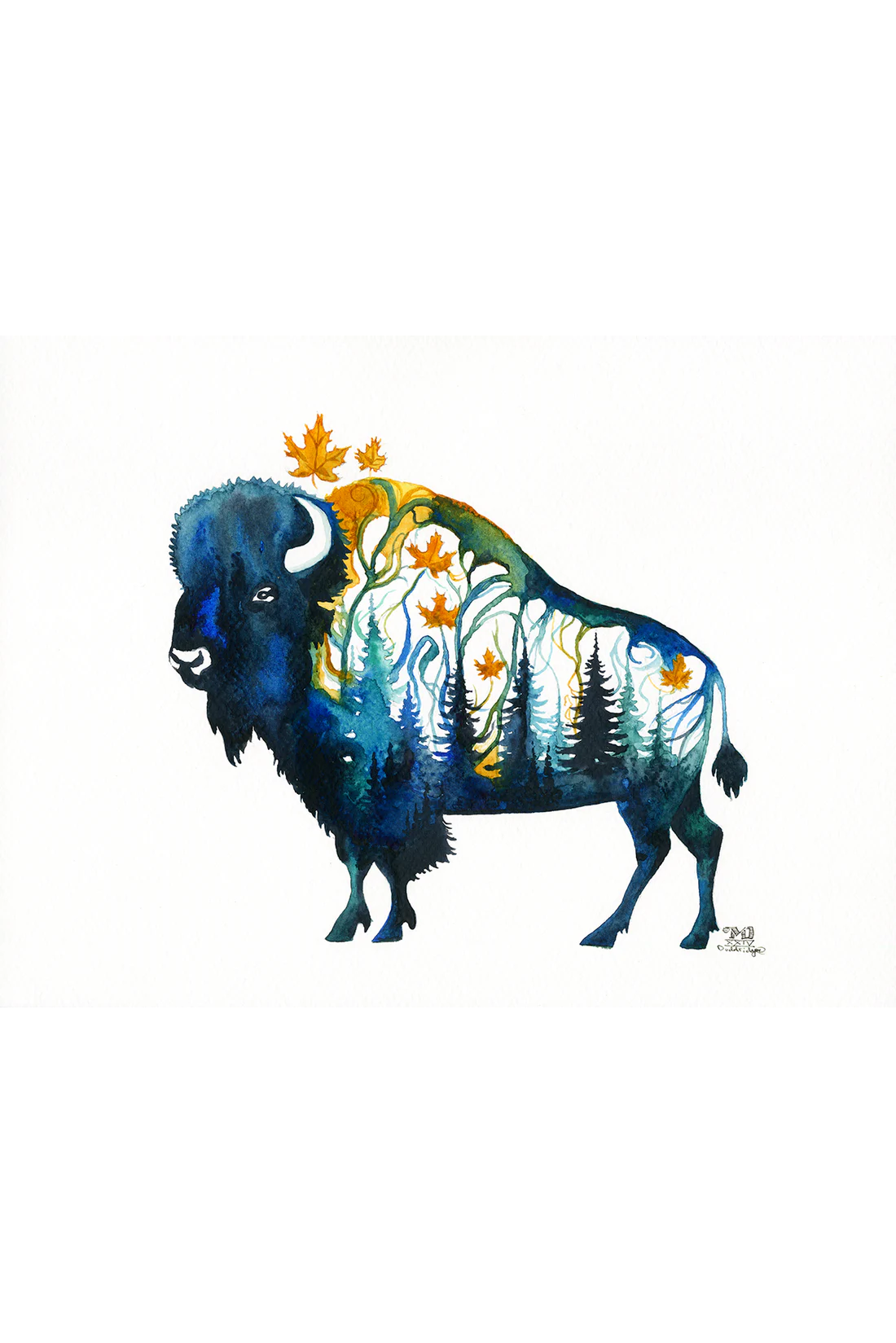 Celebrate the beauty of Canada's wild landscapes with this stunning greeting card. Featuring the iconic silhouettes of a bear, moose, bison, wolves and more, the designs incorporates lush forest imagery, evoking the tranquil spirit of the great outdoors.