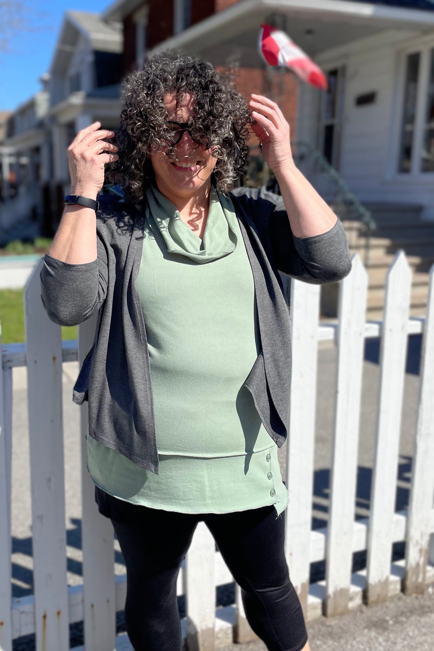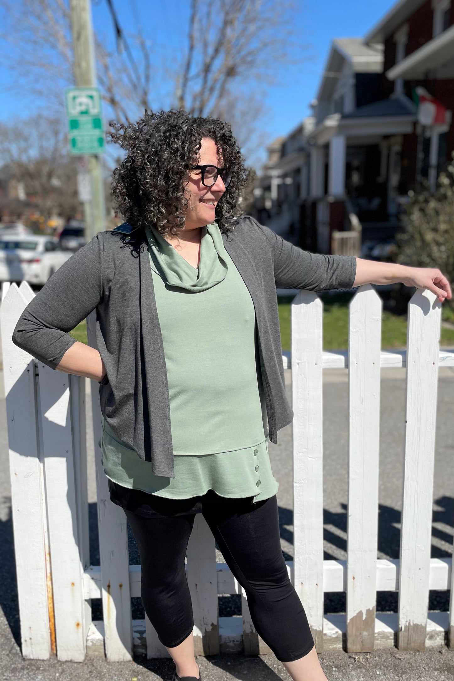We love a tank that does double duty: wear it to work (thank you, cowl!) and then out for the evening. Made of a super soft fabric (bamboo rayon, cotton, spandex). Highly recommend!