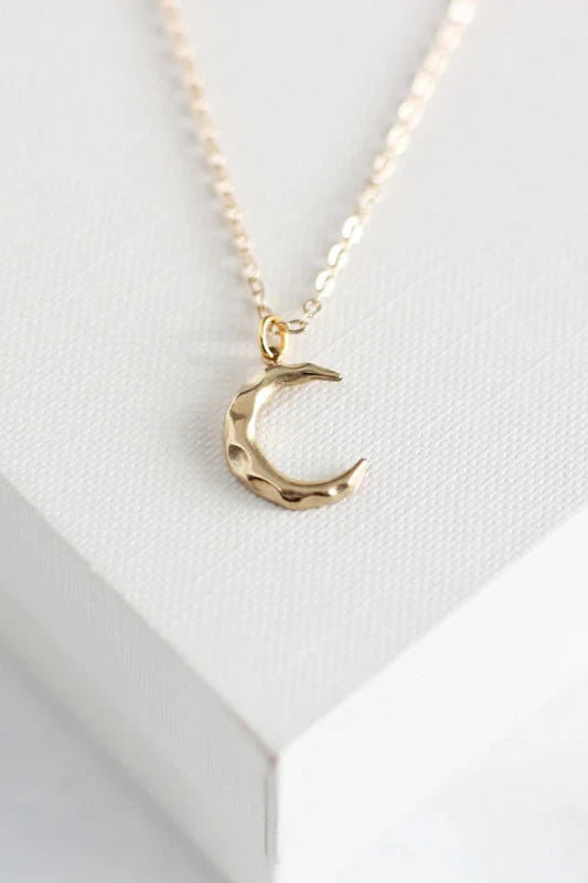 Add a touch of celestial charm with our Crescent Moon Necklace. This necklace features a stunning textured moon pendant and elevates any outfit to the stars.
