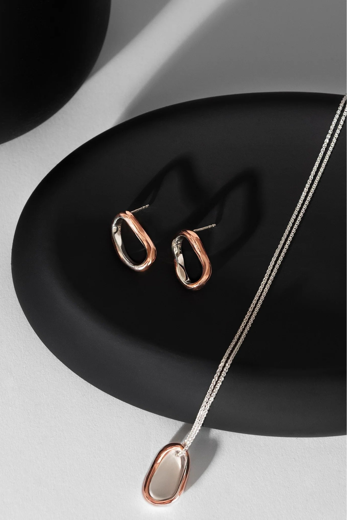 The CURVES collection is inspired by the elegant curves seen in the works of Finnish architects at the beginning of the modern era. Mirroring the Finnish design ethos of marrying form with function, the jewelry pieces from the CURVES collection are both sculptural and easy to wear. The jeweller's distinctive touch is integrated, sometimes with copper beneath silver, sometimes with silver beneath copper. The precise soldering of copper and sterling silver in this collection shows the mastery gained over years of working with these metals.