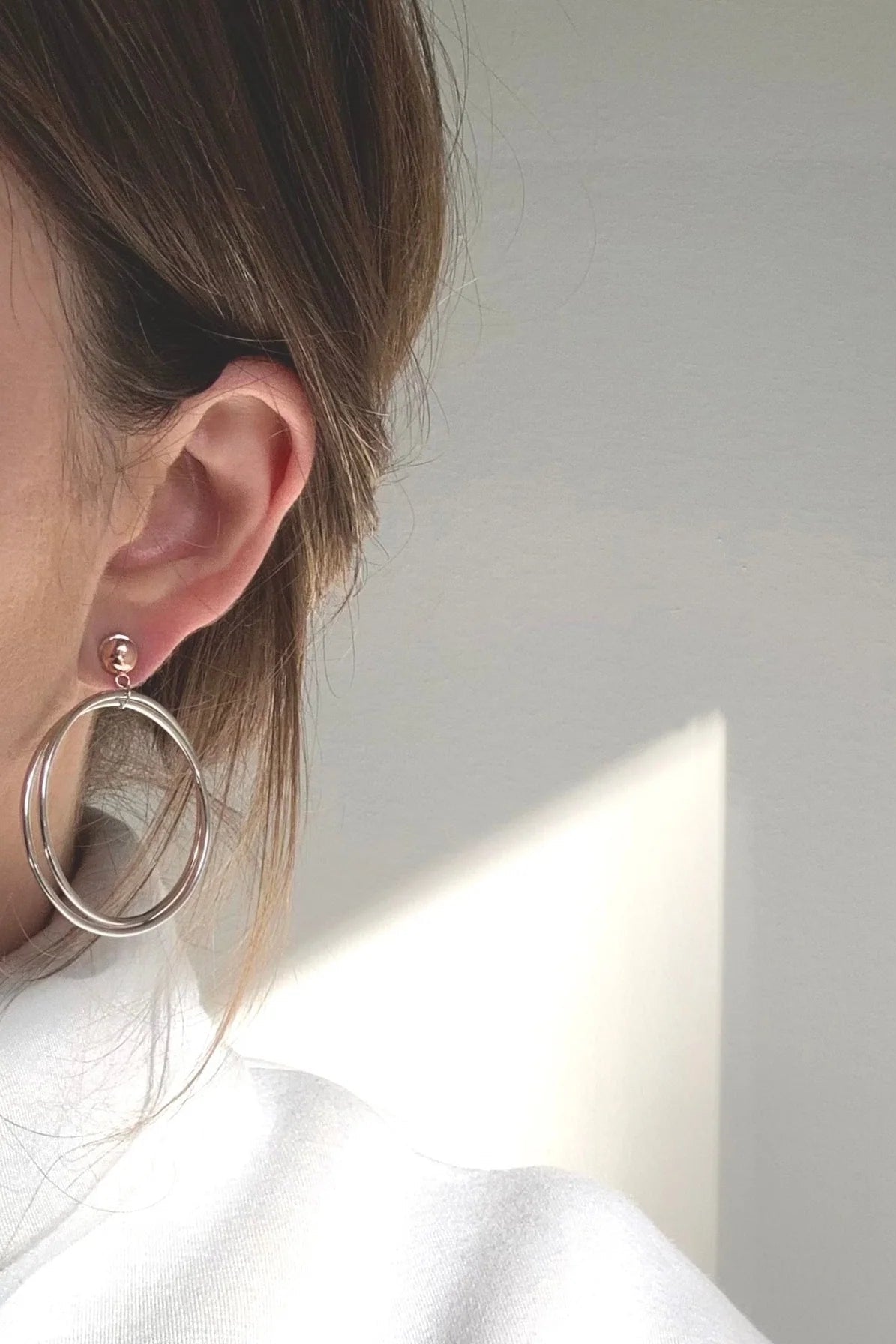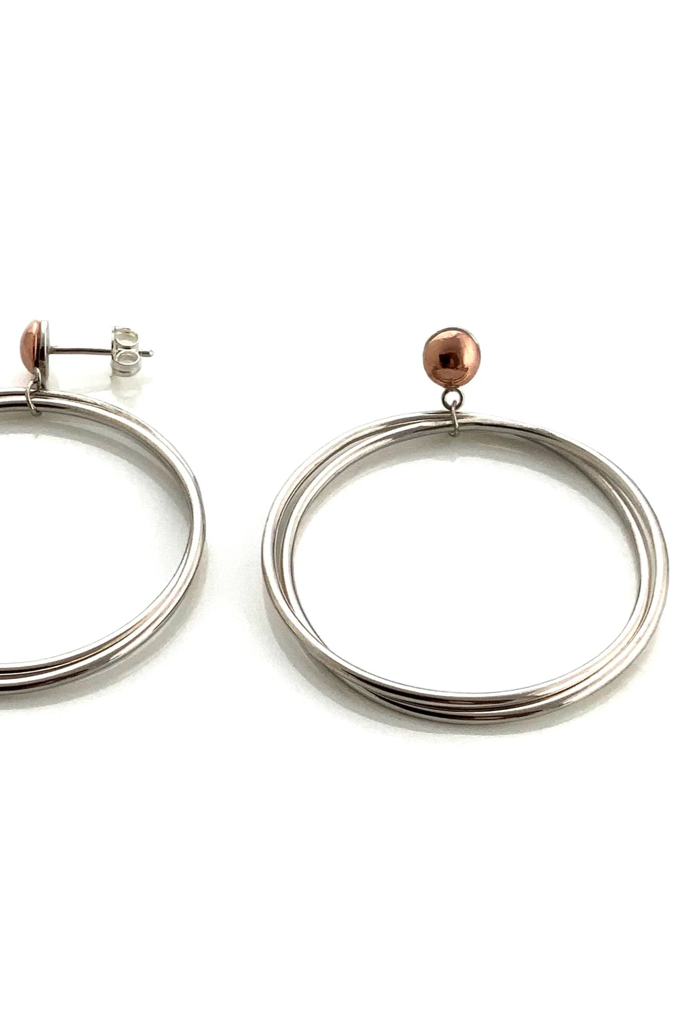 DOTS04 earrings are an interpretation of hoop earrings. The multiple jumprings that assemble these earrings allow them to move freely in all directions. Large in size but light, the DOTS04 are the ideal accessory to turn heads while remaining very comfortable.