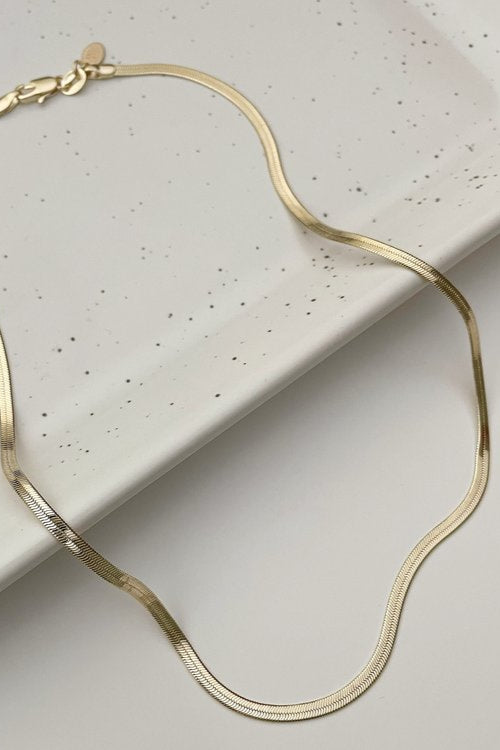 Tracing back to Ancient Egyptian times, the herringbone chain never goes out of style. 18” sterling silver or 14K gold fill.