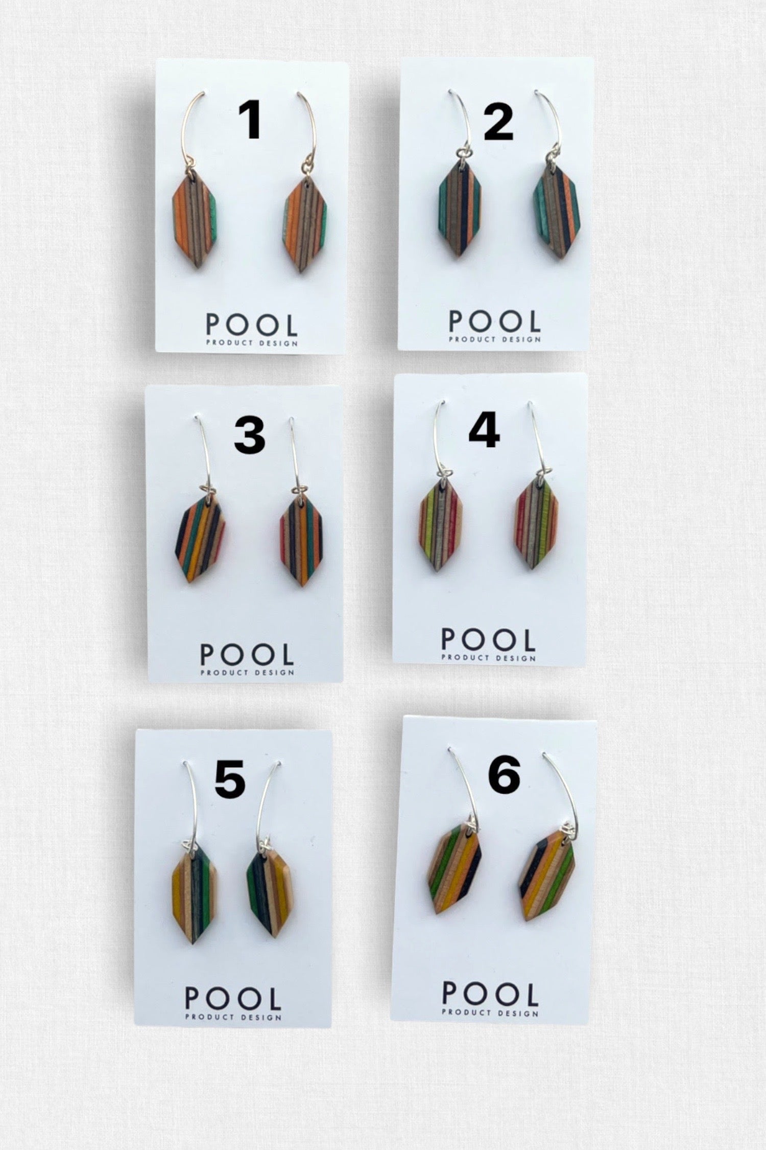 Made from upcycled skateboards, these geometric and elegant earrings will add a nice splash of colour to your wardrobe, while being super lightweight, so you will hardly notice you're wearing them!