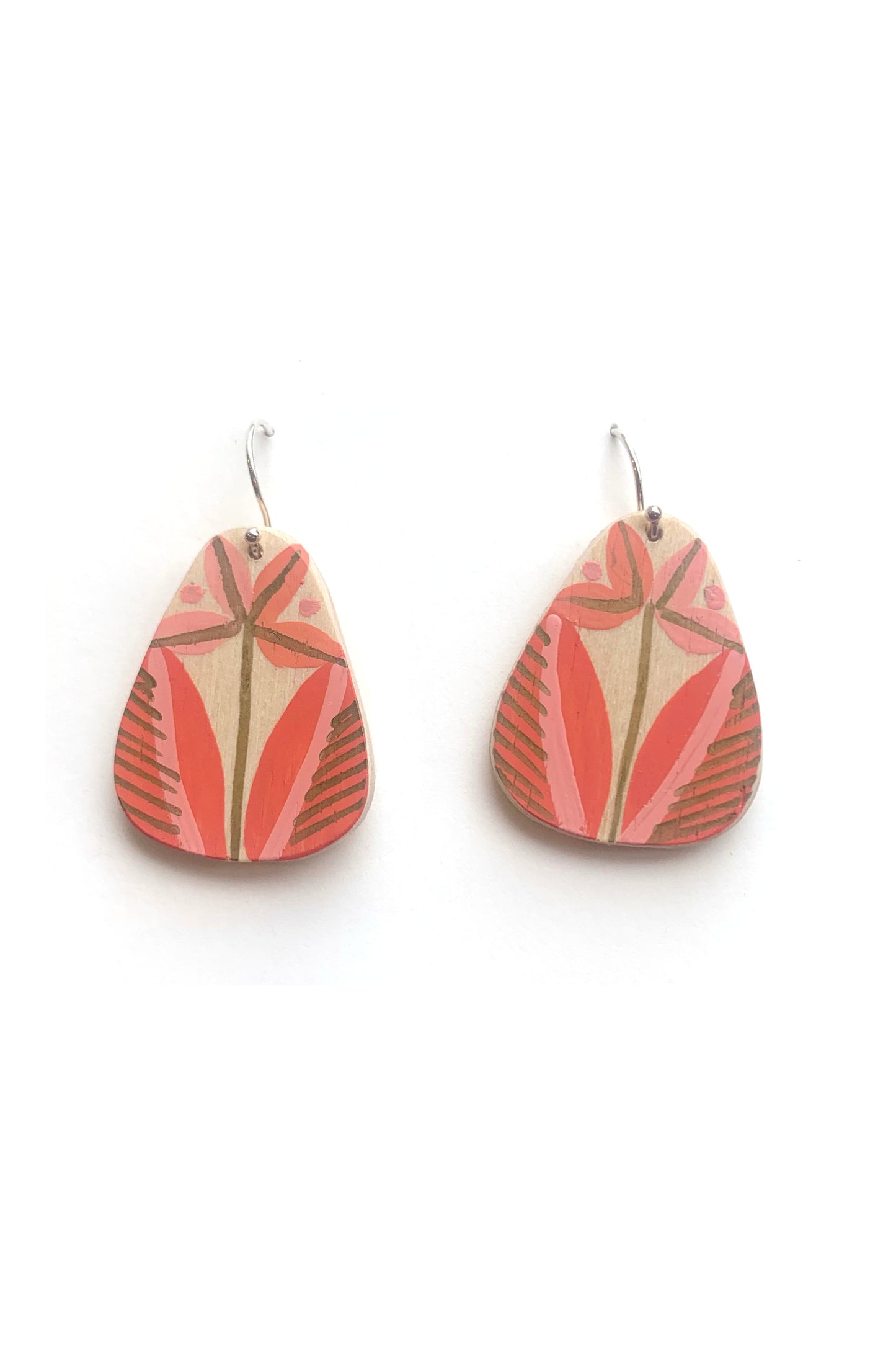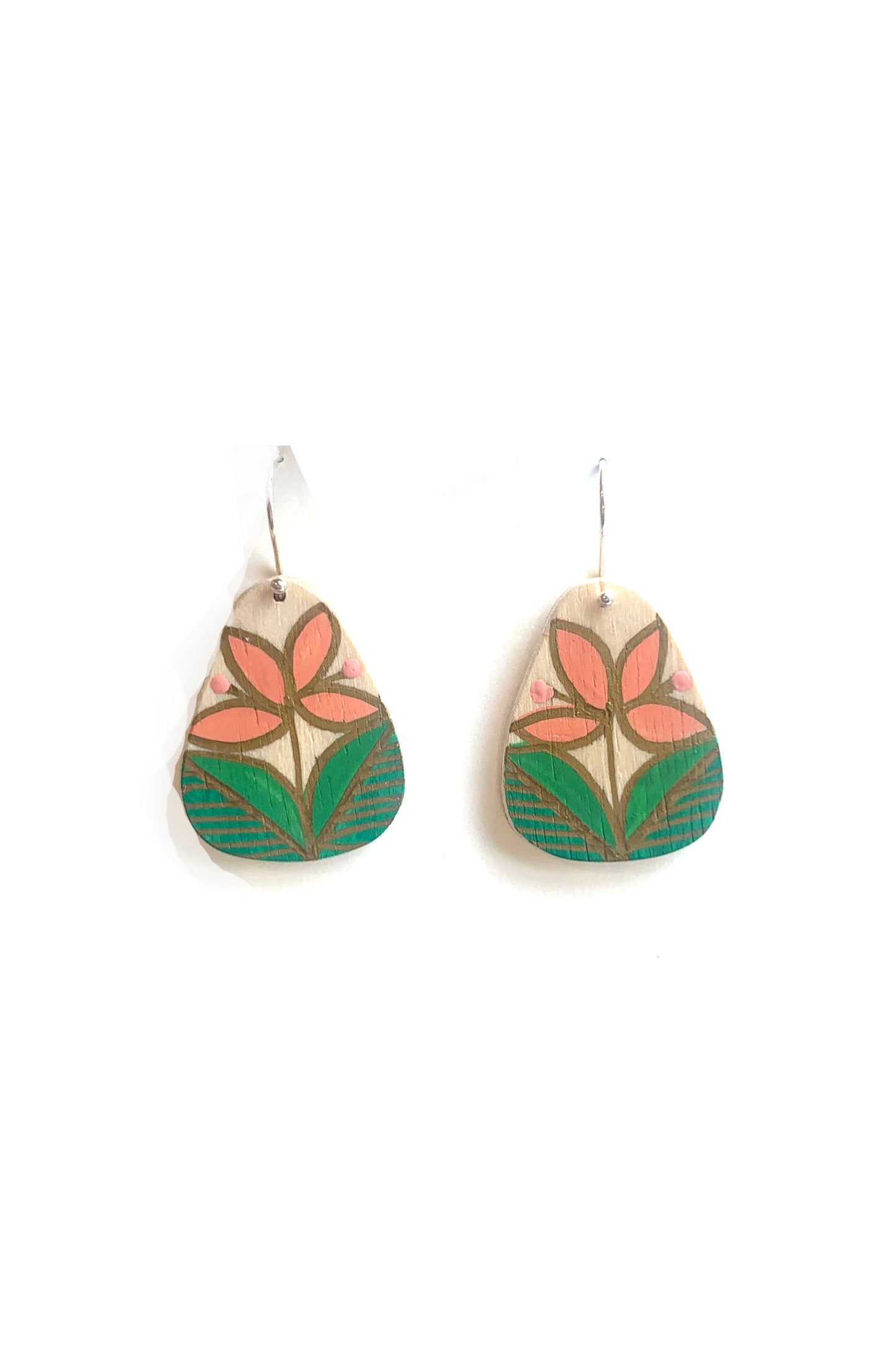 These one-of-a-kind hand painted wood earrings are extremely light and easy to wear.