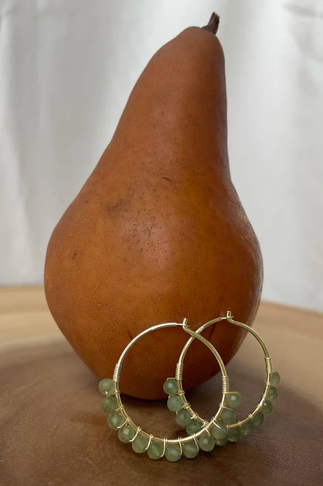 All Earrings are on a 25mm hoop that have been hand wrapped using dainty 2mm stones.