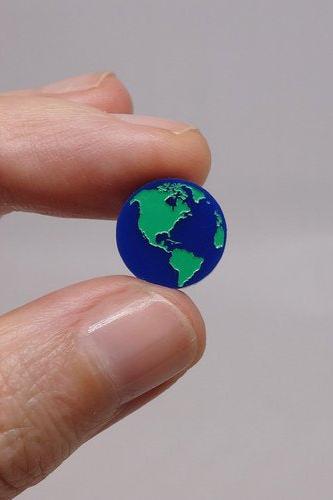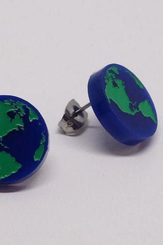 Earrings made from reclaimed blue and silver plastic, laser engraved and cut. Filled with green, grey, silver, orange and/or white paint.