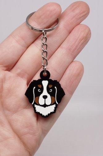 Keychain made with black reclaimed plastic, engraved and laser cut. Brown/orange and white paintfill.
