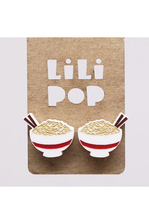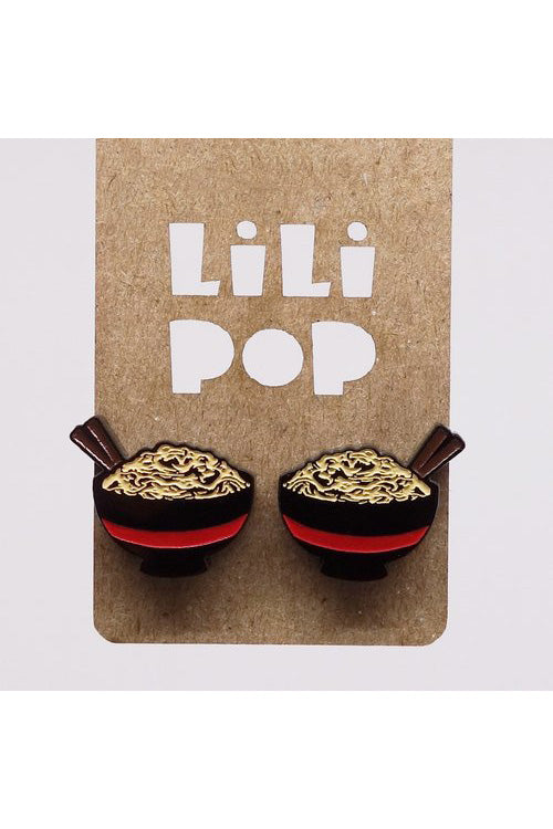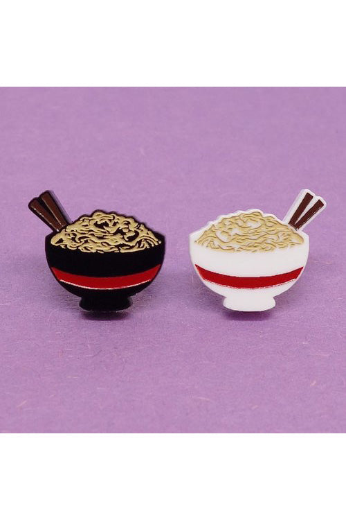 Earrings made from reclaimed black or white plastic, engraved and laser cut. Filling with beige, red and brown paint.