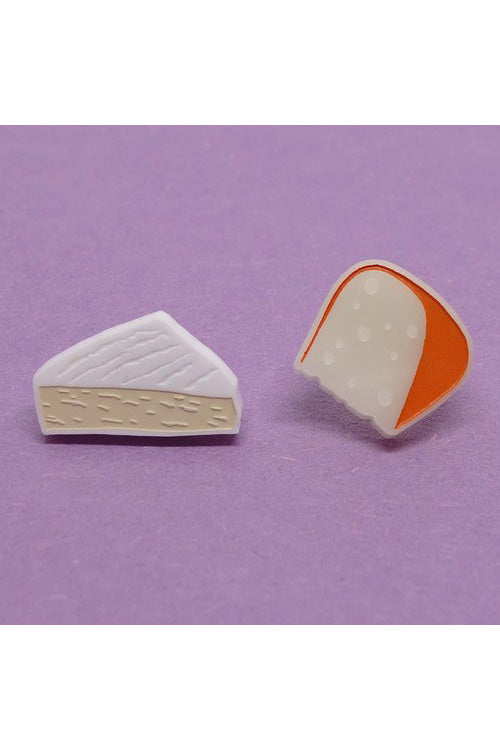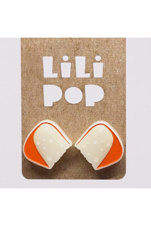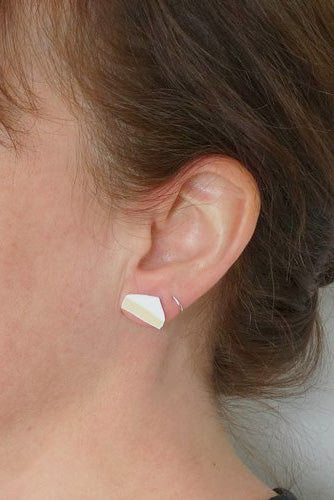 Earrings made from reclaimed beige or white plastic, engraved and laser cut. Filling with beige or orange paint.