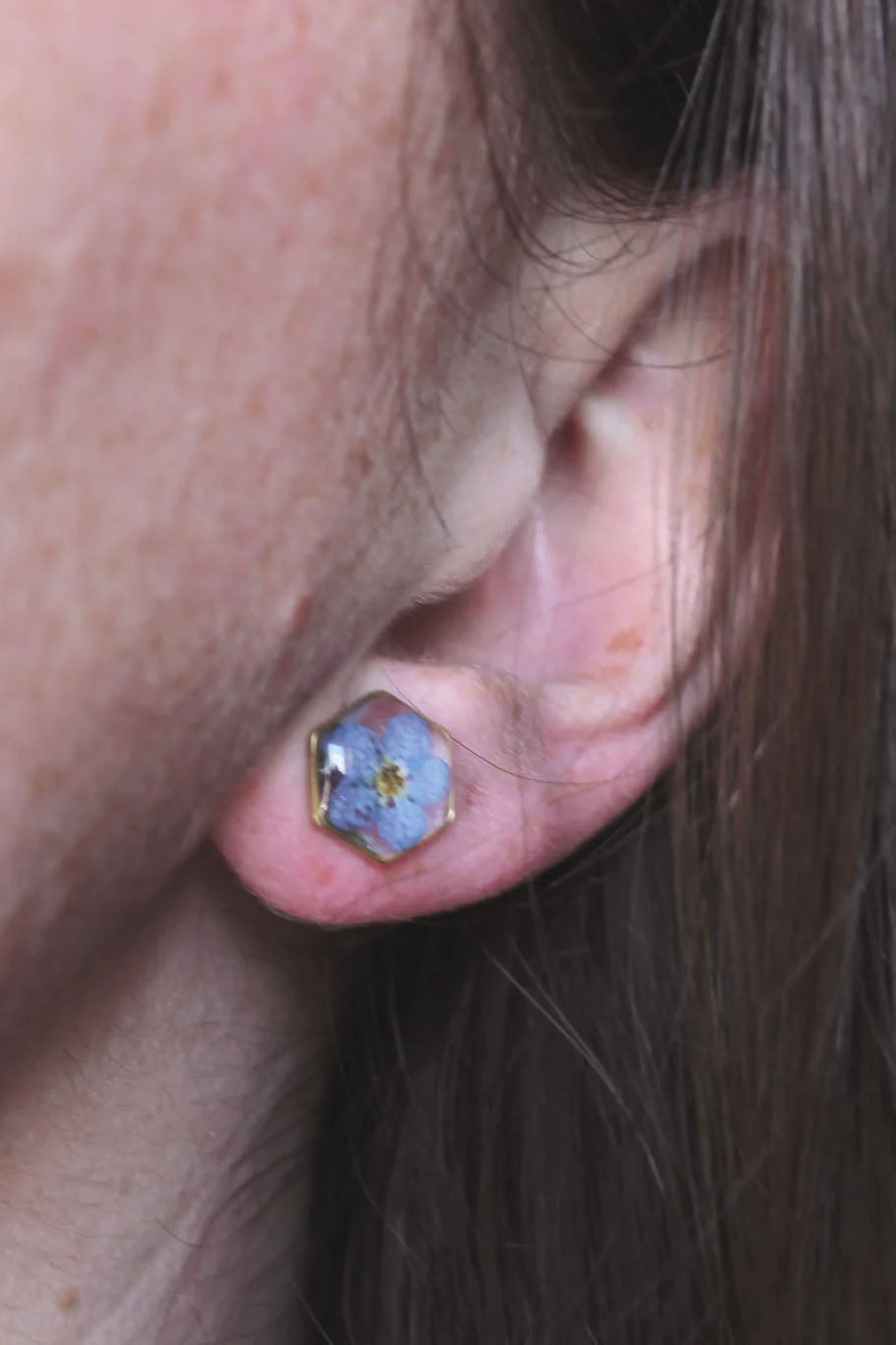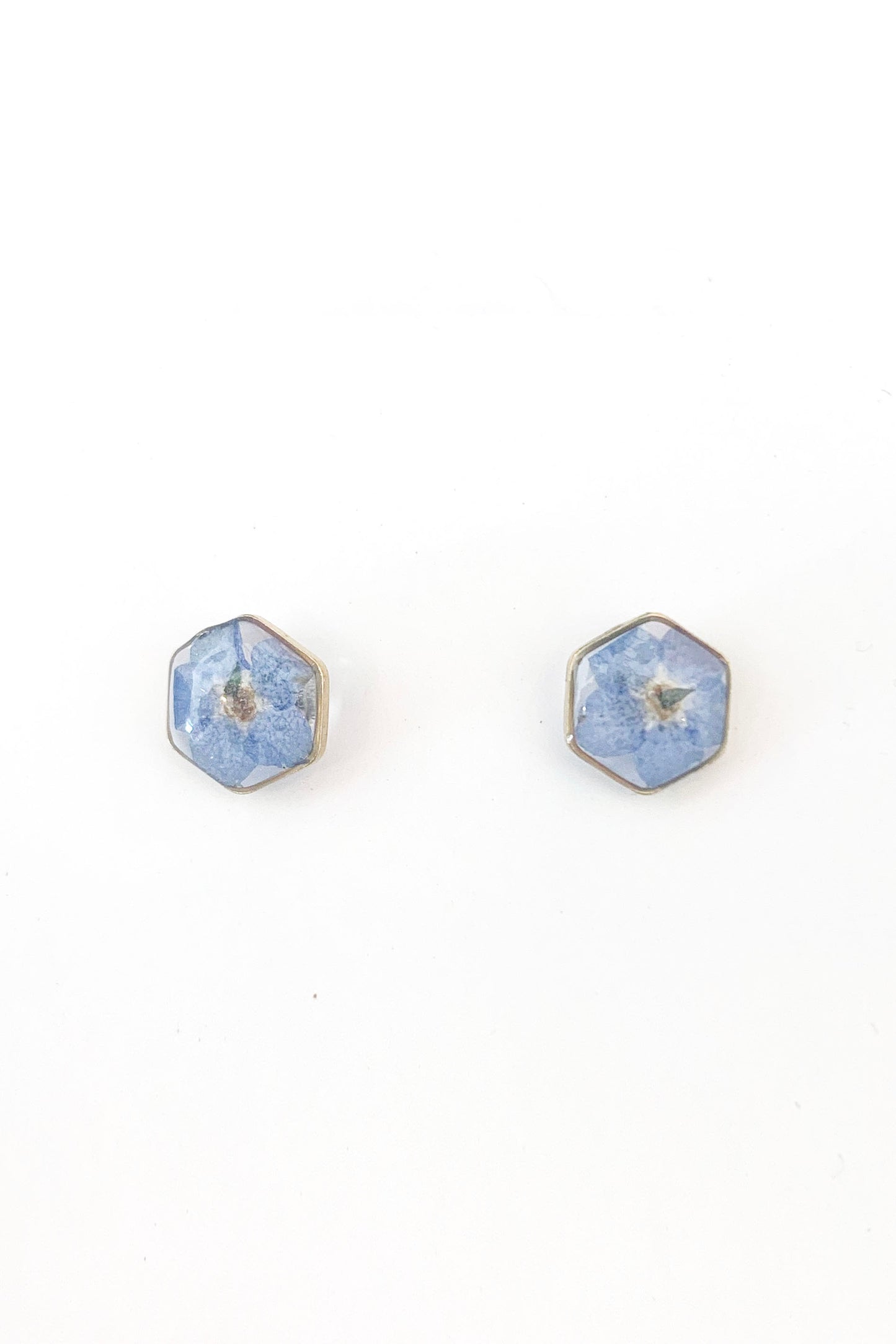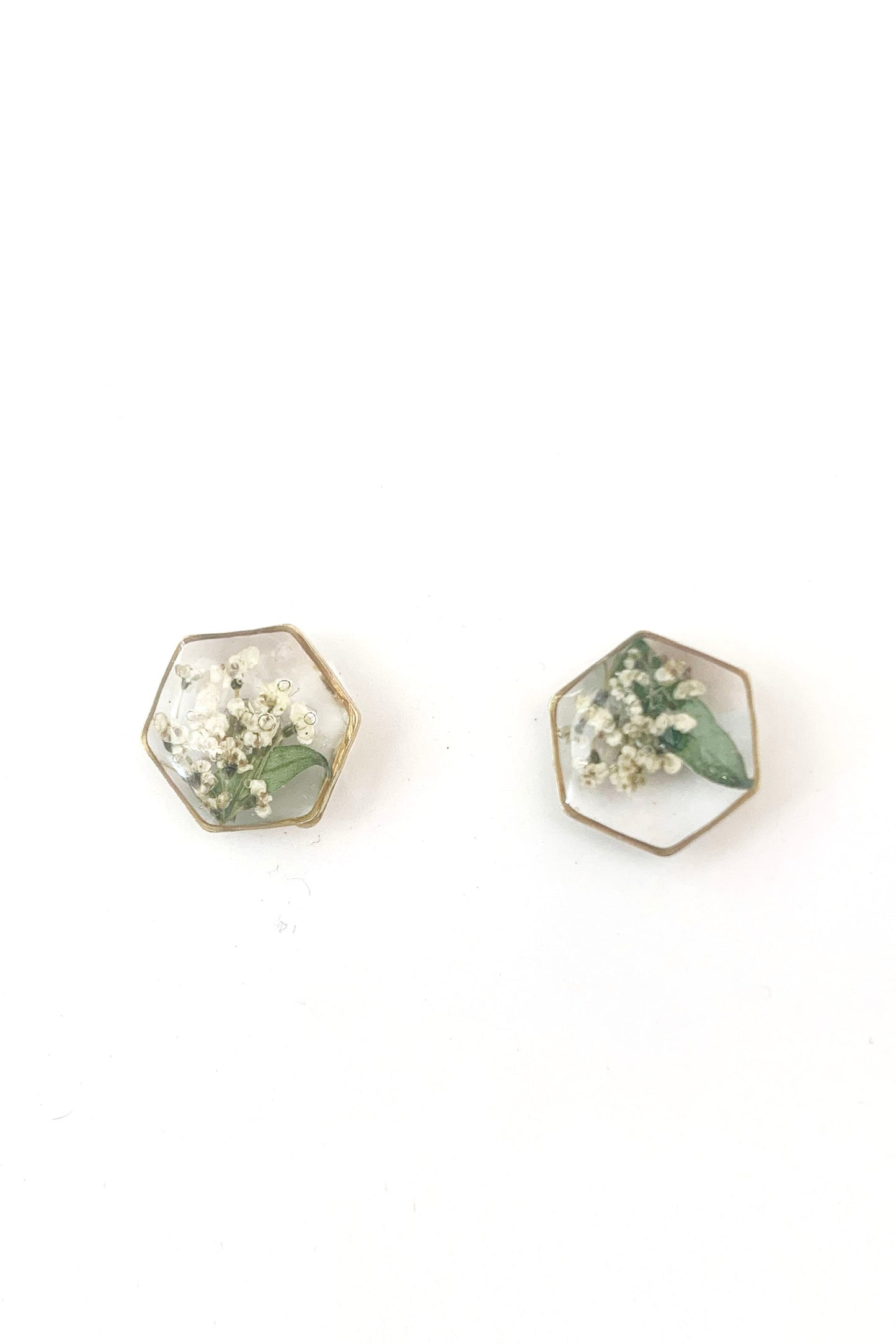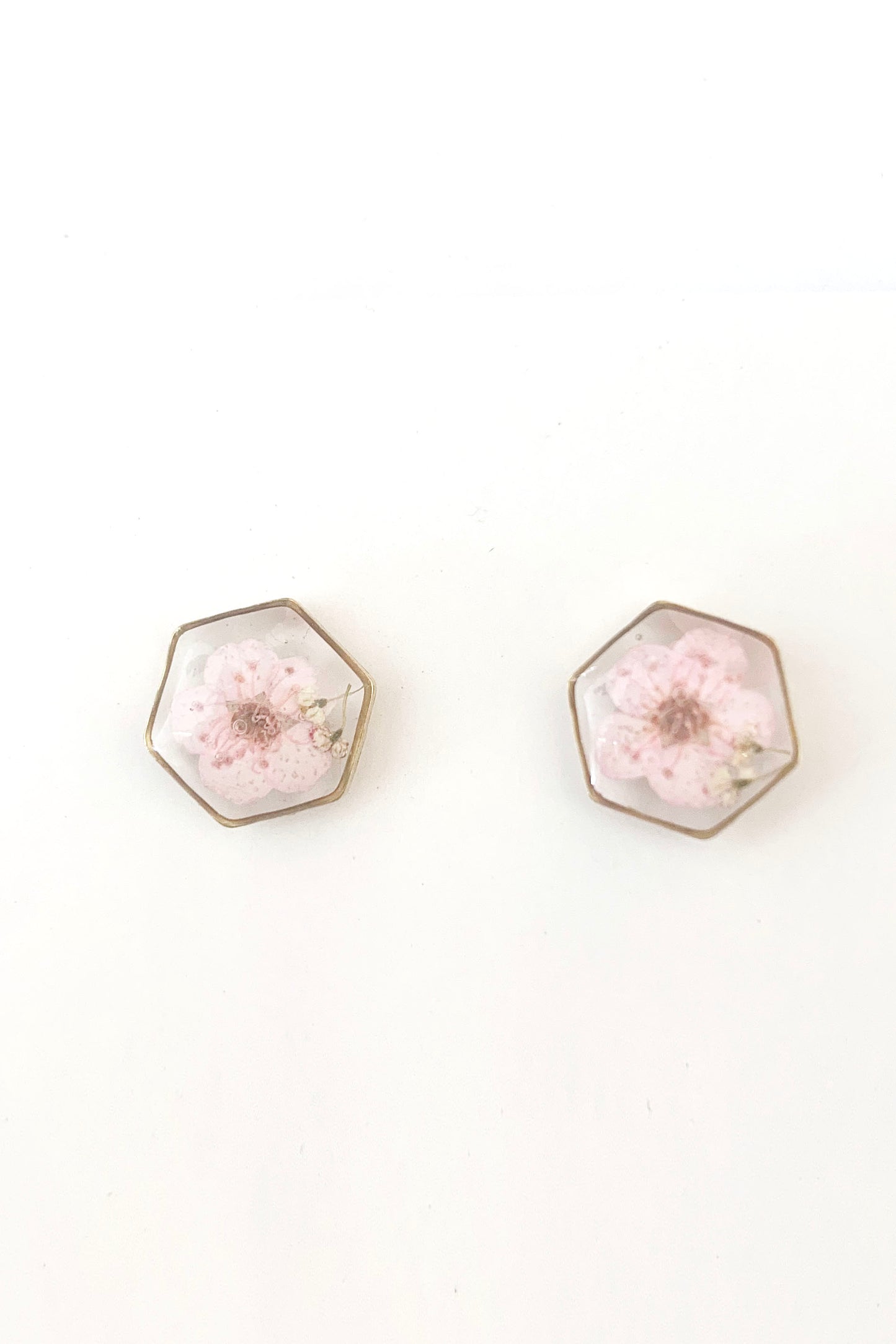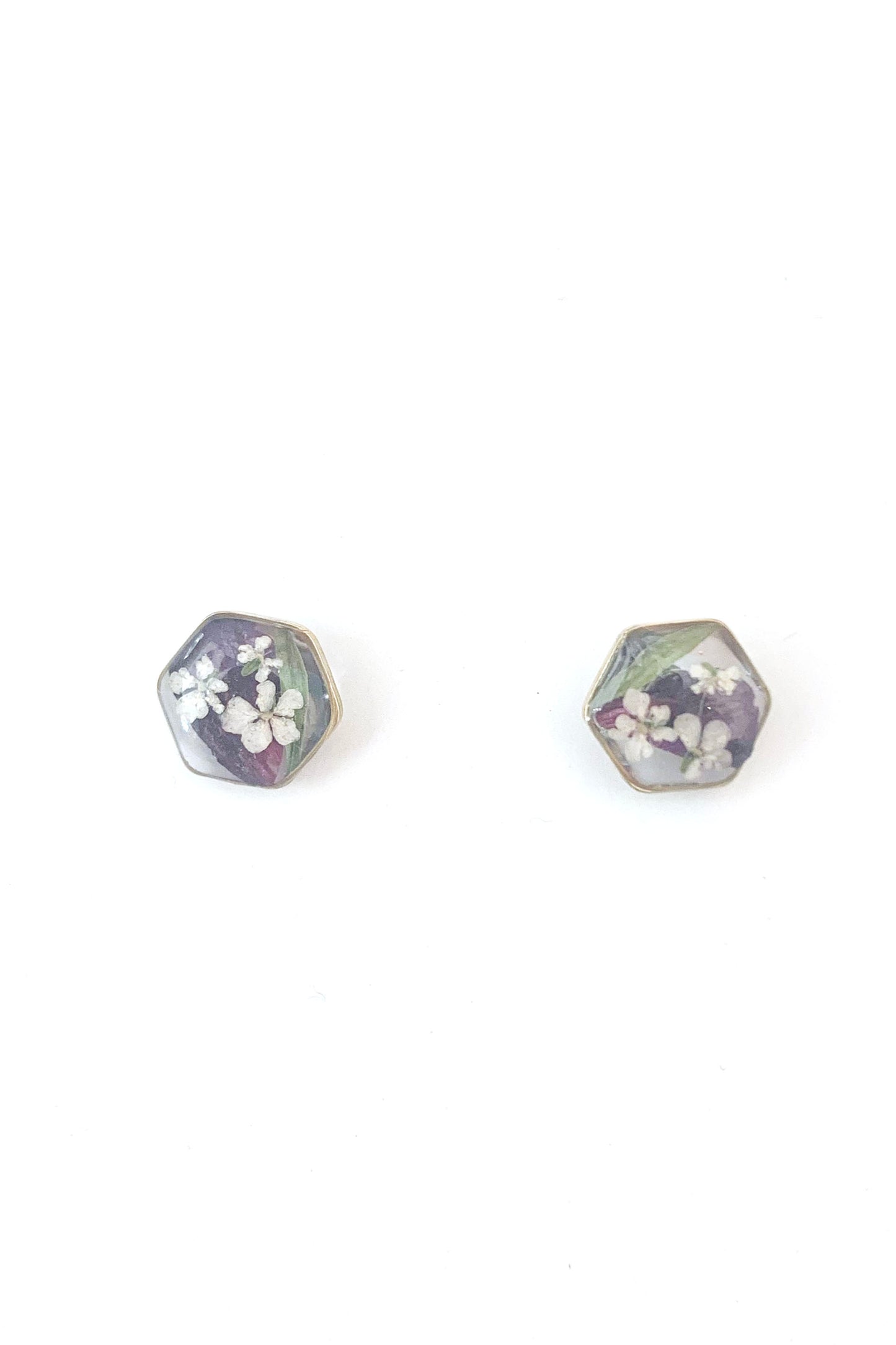 Pressed Flower Hexagon Stud Earrings