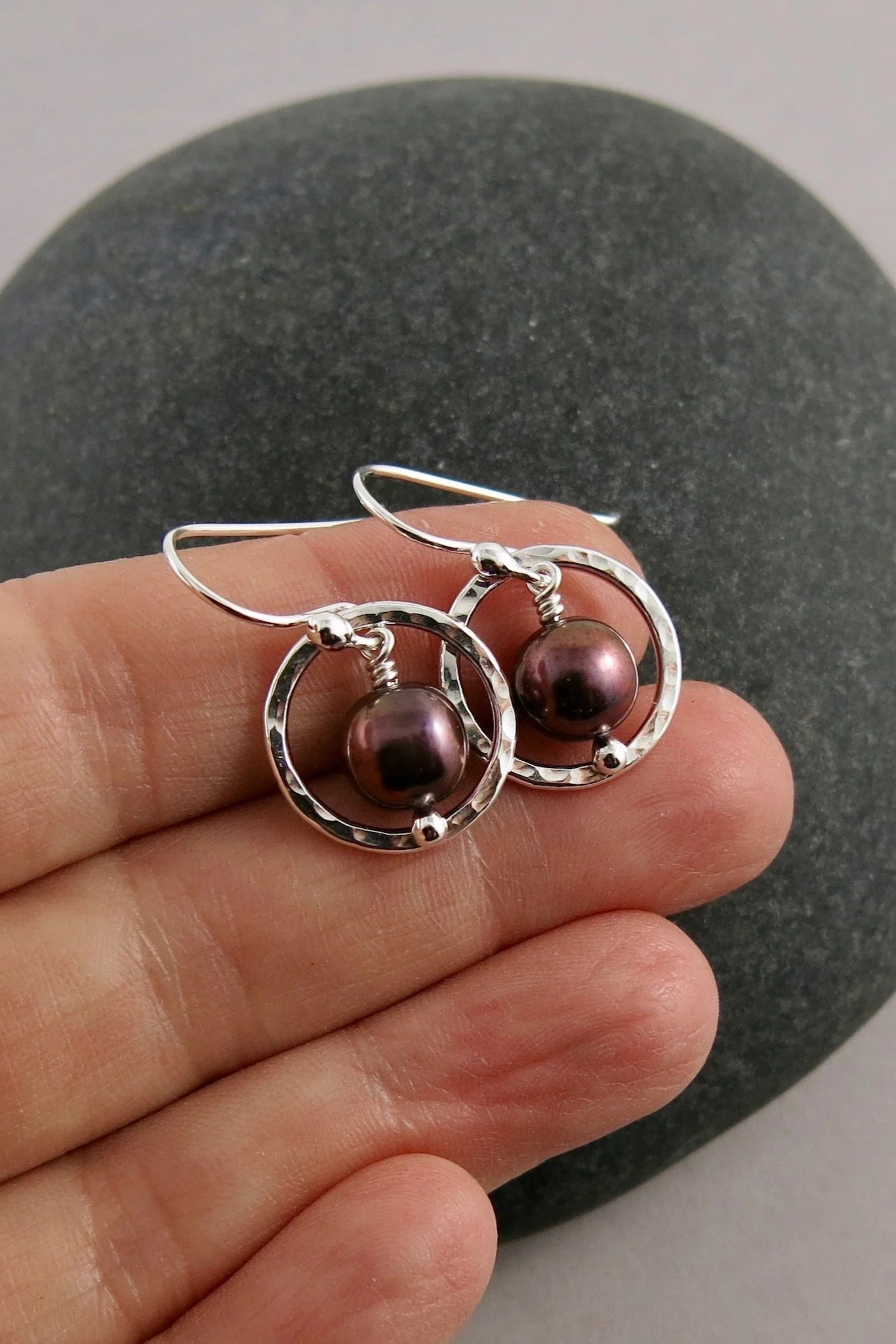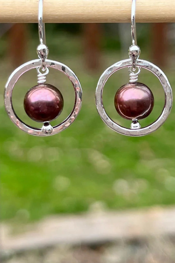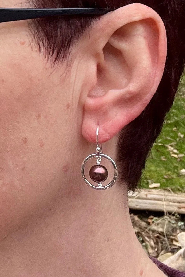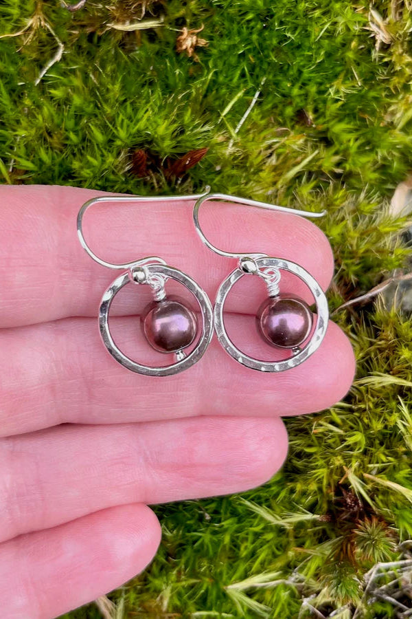 Purple Pearl Nesting Circle Earrings - Sterling Silver
