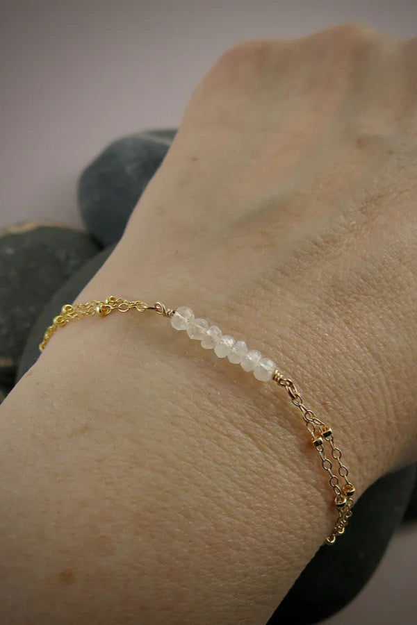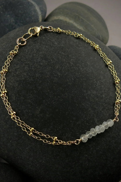 Double Strand Satellite Chain Bracelet with Moonstones • 14K Gold Filled Chain