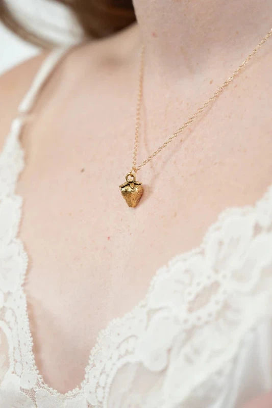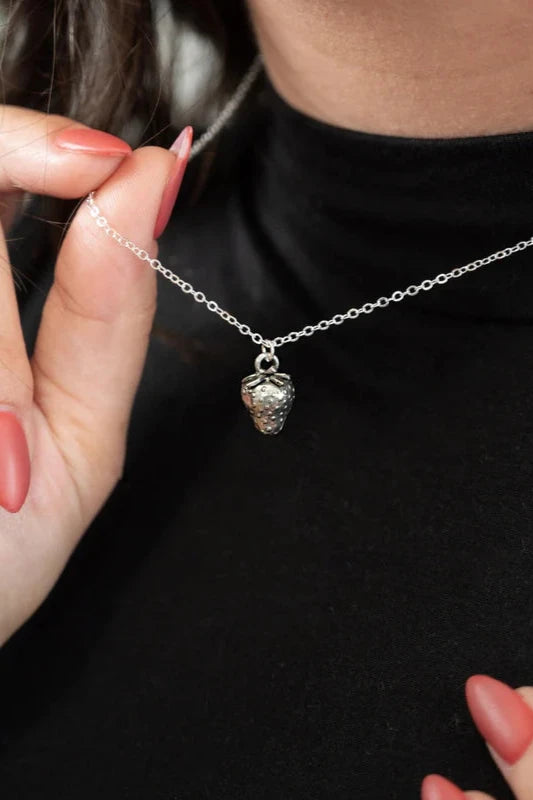 This quirky and playful Strawberry Necklace features an intricately detailed strawberry pendant, adding a touch of fun to any outfit. An adorable piece to add to your jewellery box, and a great conversation started (because it's so darn cute!)