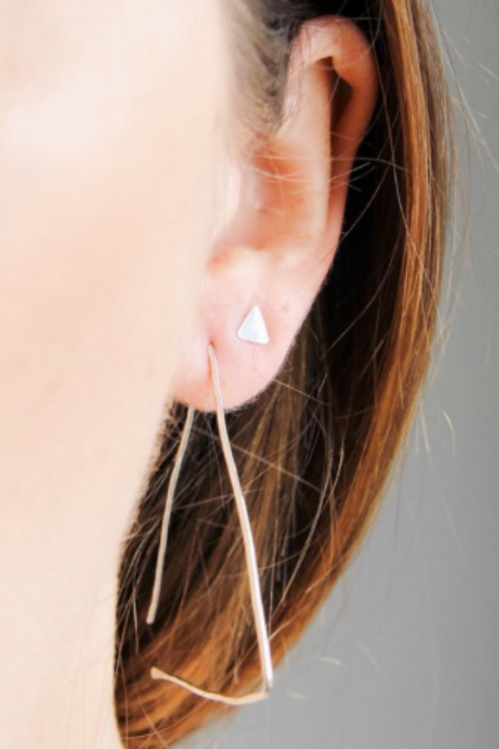 Add some geometric to your look with these Triangle Hoops from Katye Landry. These large, open triangle earrings measure two inches on each side. They're forged from 18 gauge Sterling Silver or Goldfill.