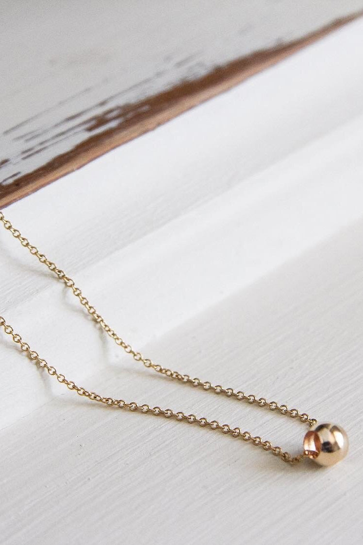 Channel inner peace with this simple but beautiful Zen Necklace from Katye Landry. This piece features a 6mm bead charm in 14k gold fill or Sterling Silver on a matching round cable 18" chain.